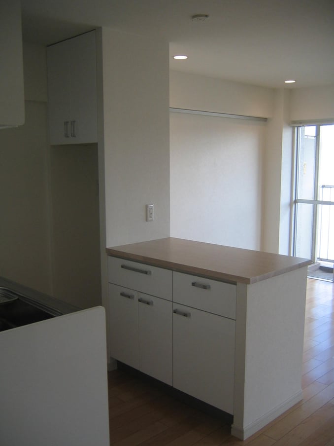 オープンで丸見えだったキッチンスペースをカウンターキッチンへ変更。